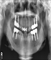 | ● 내용 : 상악 임플란트 지지 틀니와 하악 고정식 보철의 만남. |