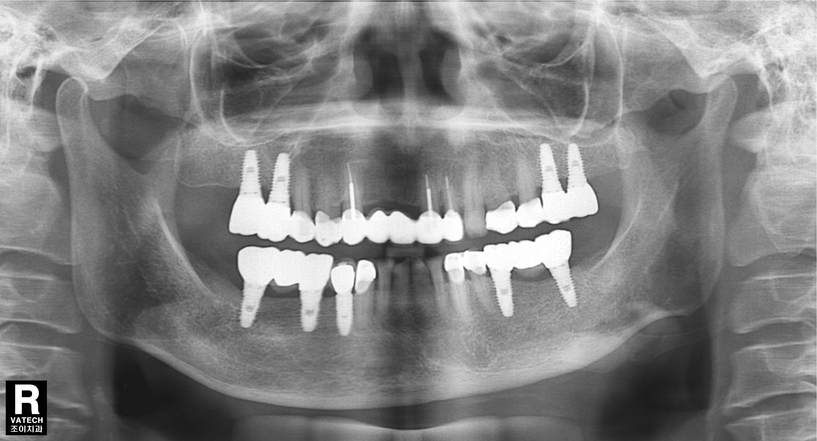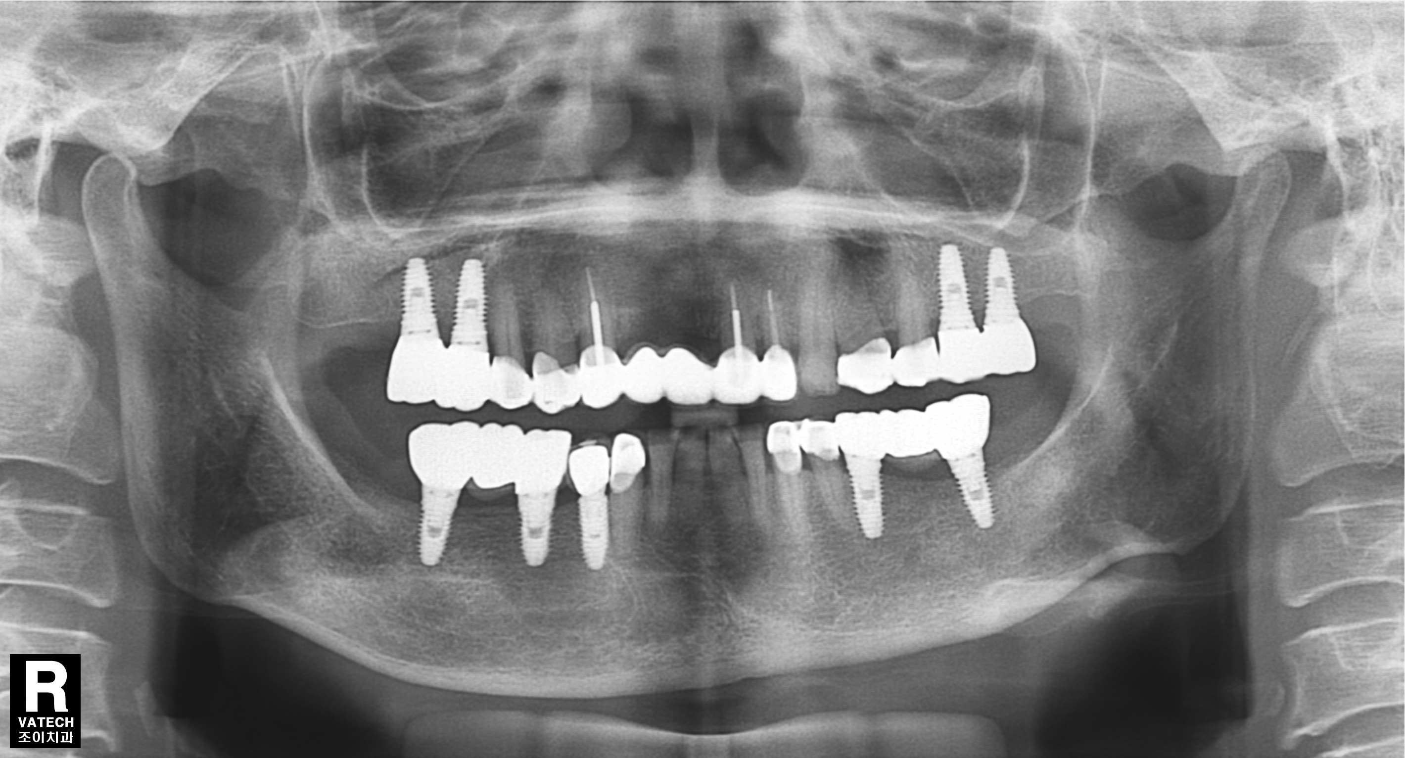 또한 임플란트의 사용과 유지 관리에 있어서도 반드시 정기적으로 치과를 방문하여 적절한 관리를 받아야 합니다. 사진에서는 7년이 경과한 후에도 치조골의 흡수 없이 잘 유지되고 있는 상태를 관찰할 수 있습니다.