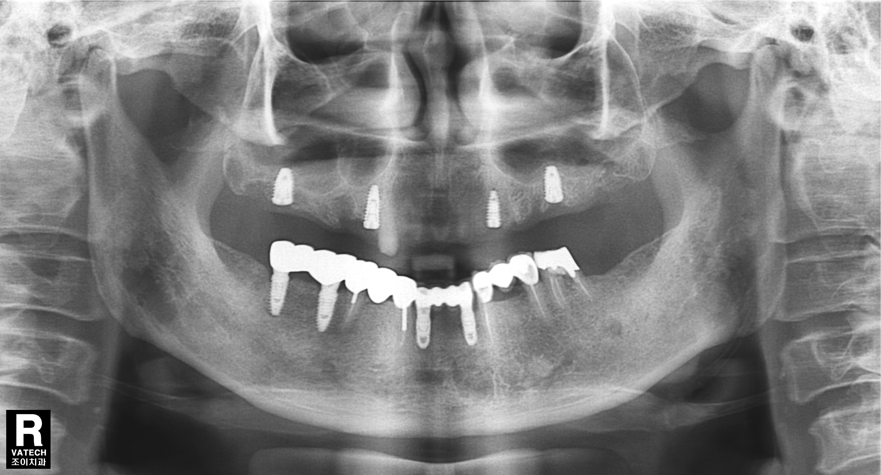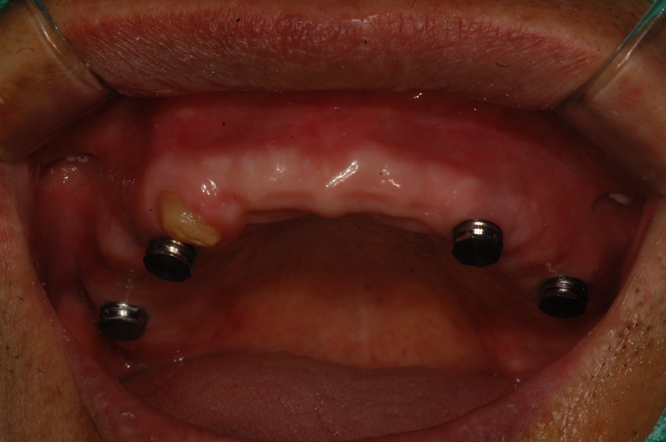 임플란트에 똑딱이 같은 장치를 달아서 틀니를 쓰기 편하게 하는 방법입니다.